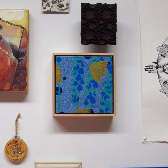 Blues Painting + Silkscreen Textile Wall Art 8" x 8"