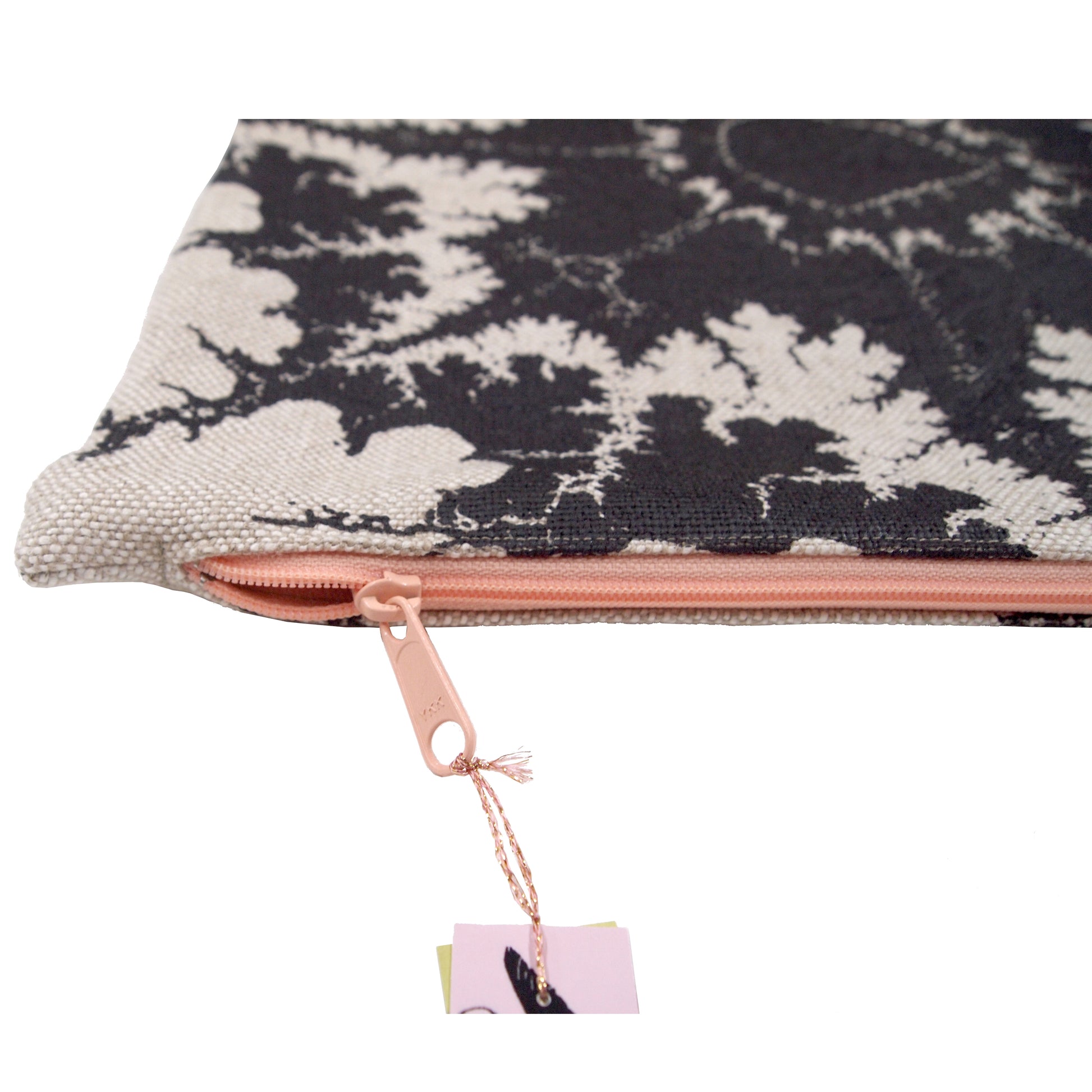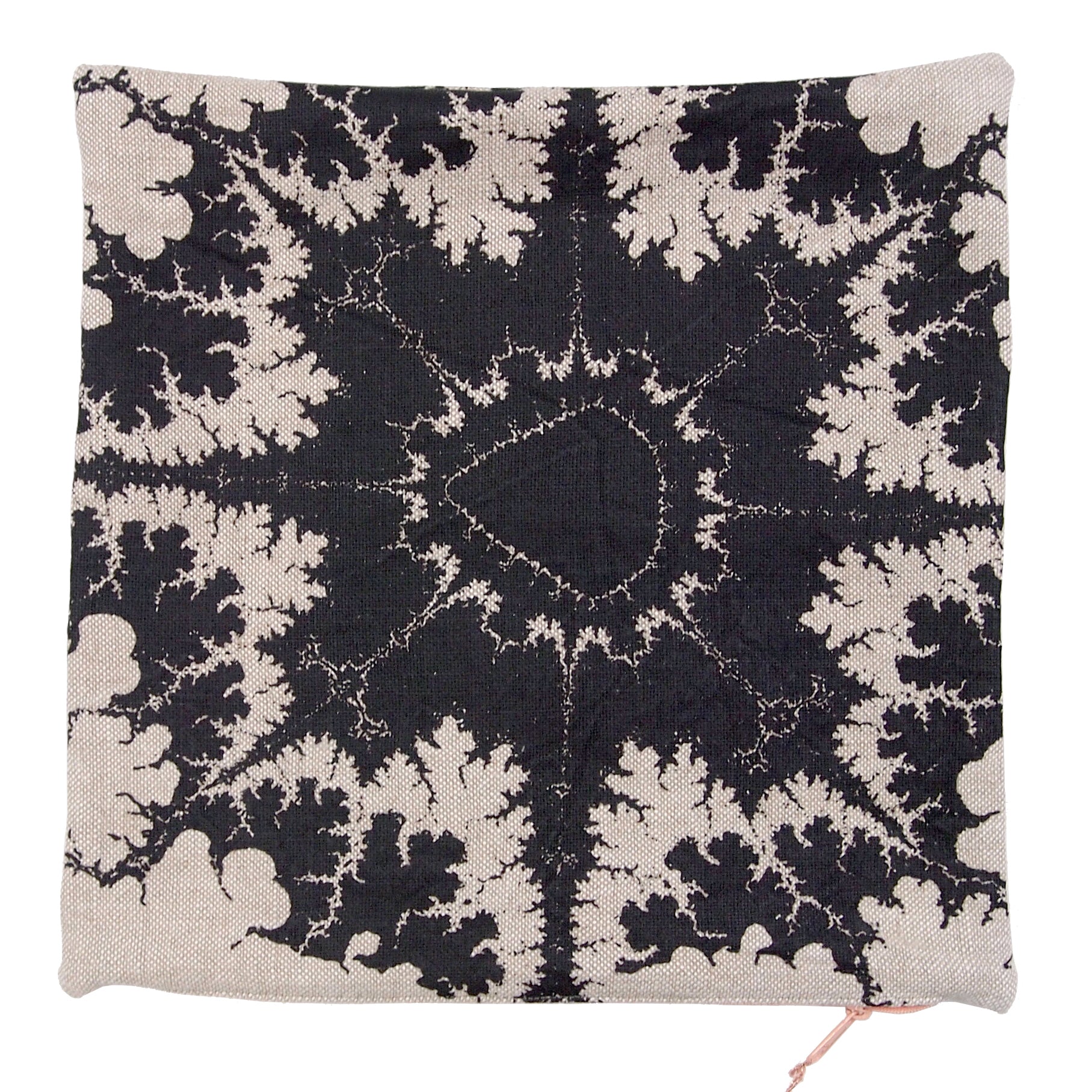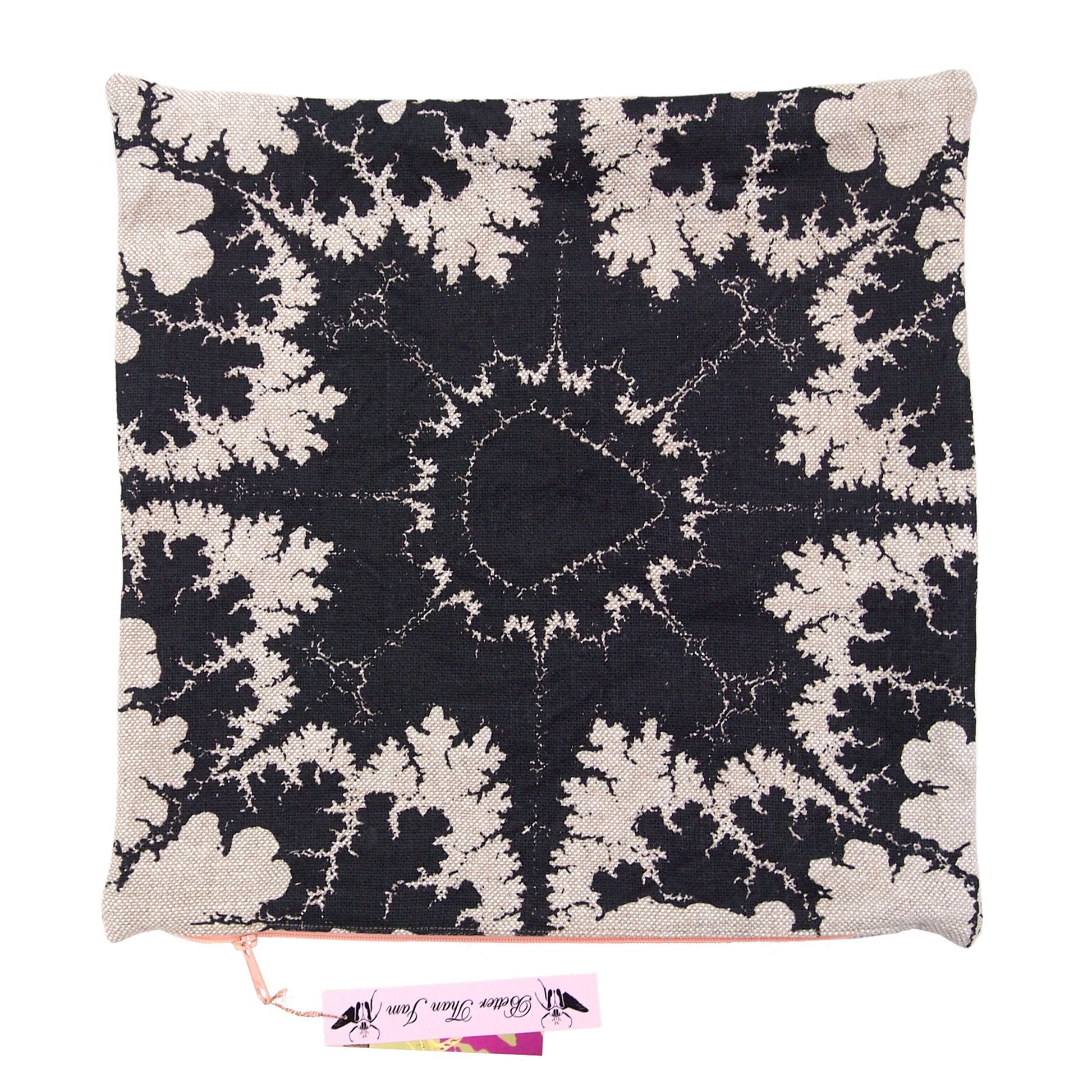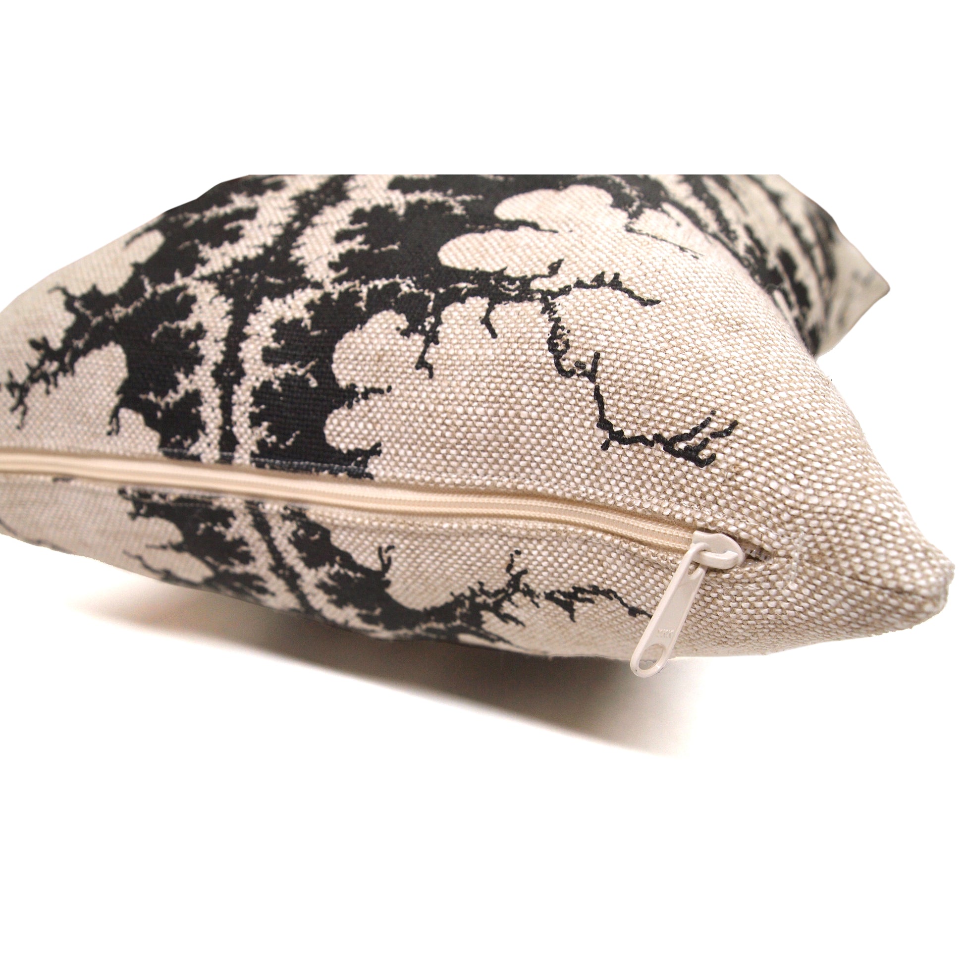 Hand silkscreened upholstery grade heavy weight linen, handmade in house, with extra colorful zippers. Both sides printed!