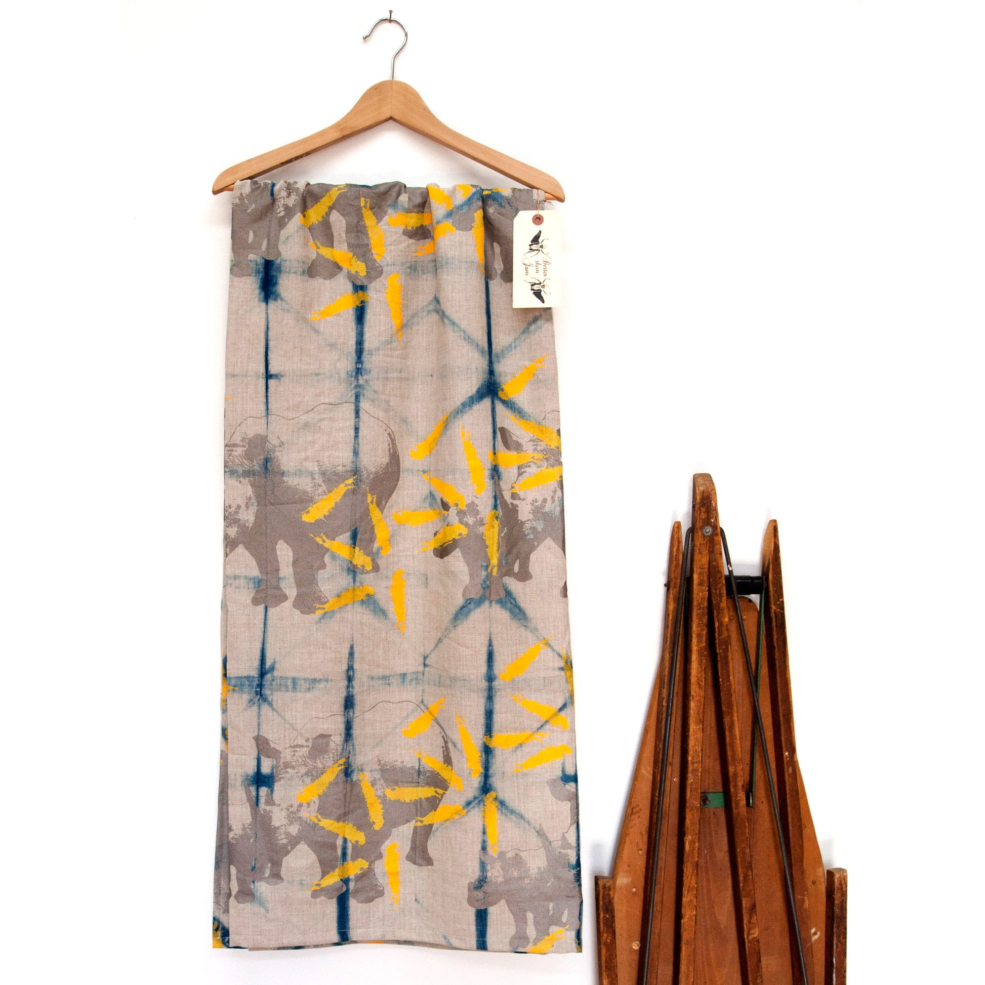 Indigo Dyed Linen with Printed Rhinos and Islands