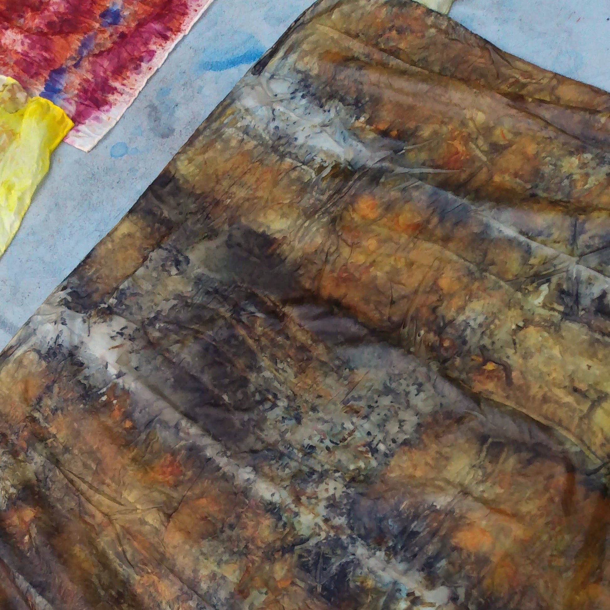 Other techniques including flower hammering can be experimented with. We can even over dye with indigo!