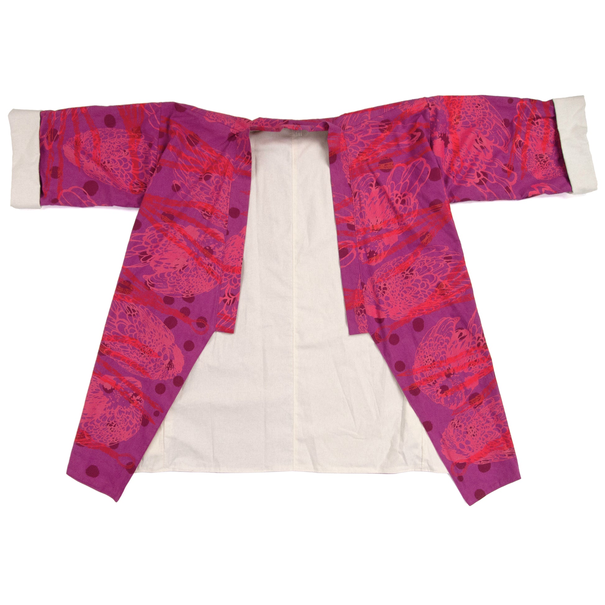 Magenta Linen Cotton Kimono Style Wrap with Chickens