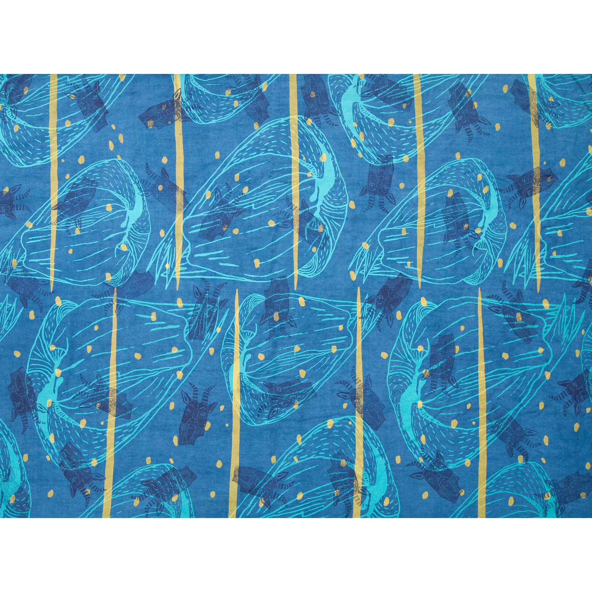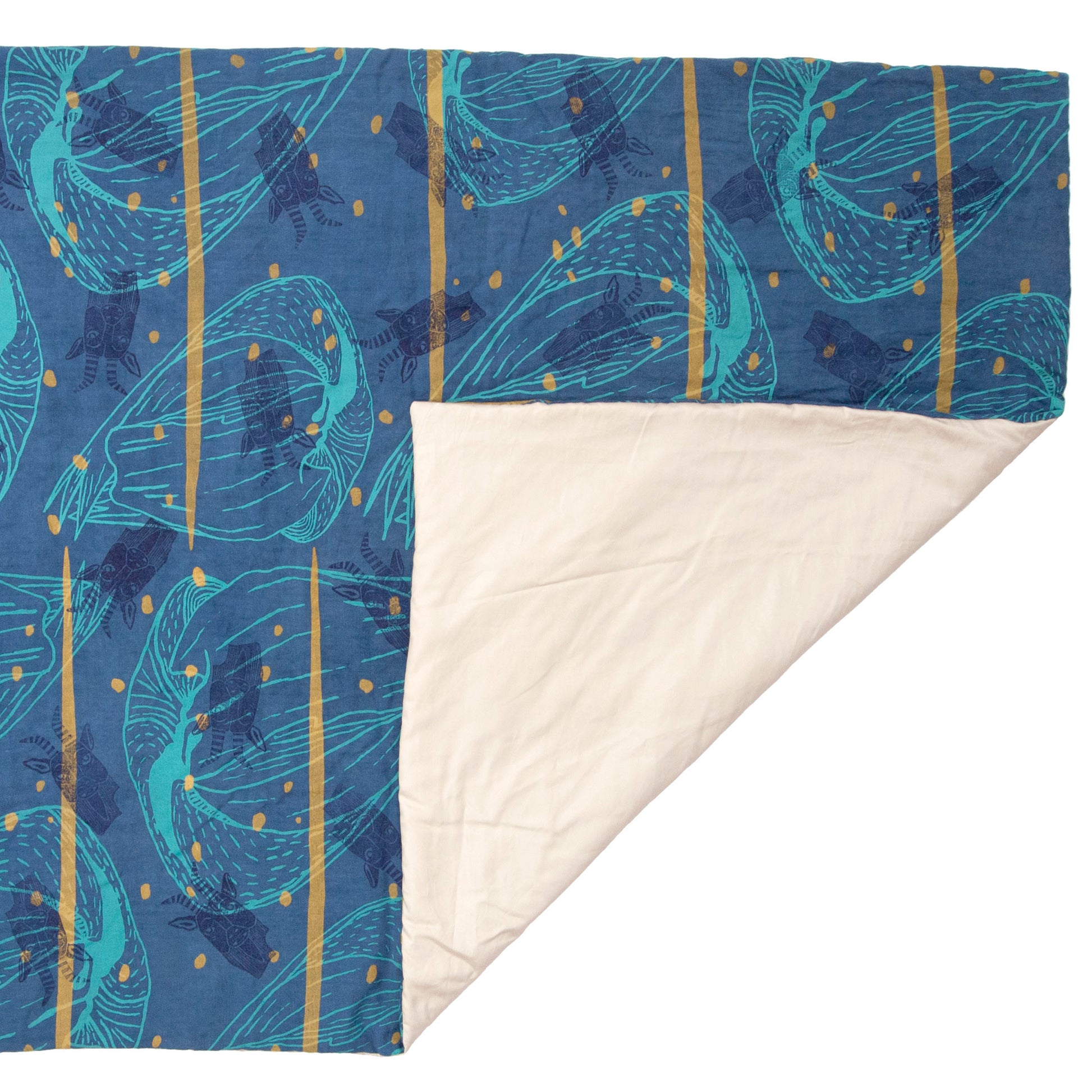 Padded Throw // Indigo Dyed Linen Printed with Goats, Fawn Makings, Coconuts
