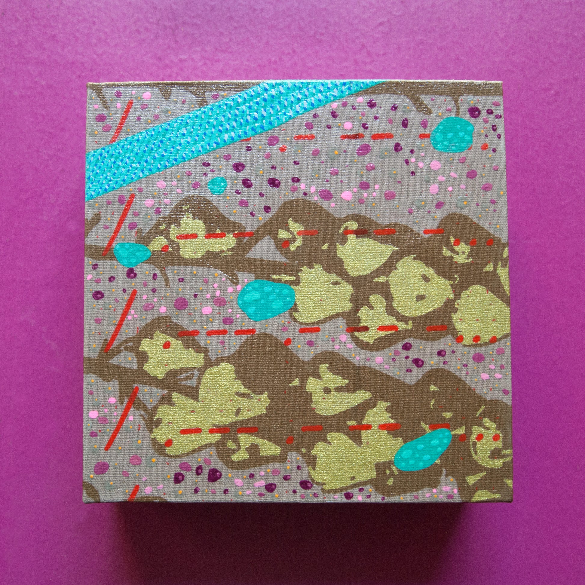 Rose Gold Painting + Silkscreen Textile Wall Art 6" x 6"