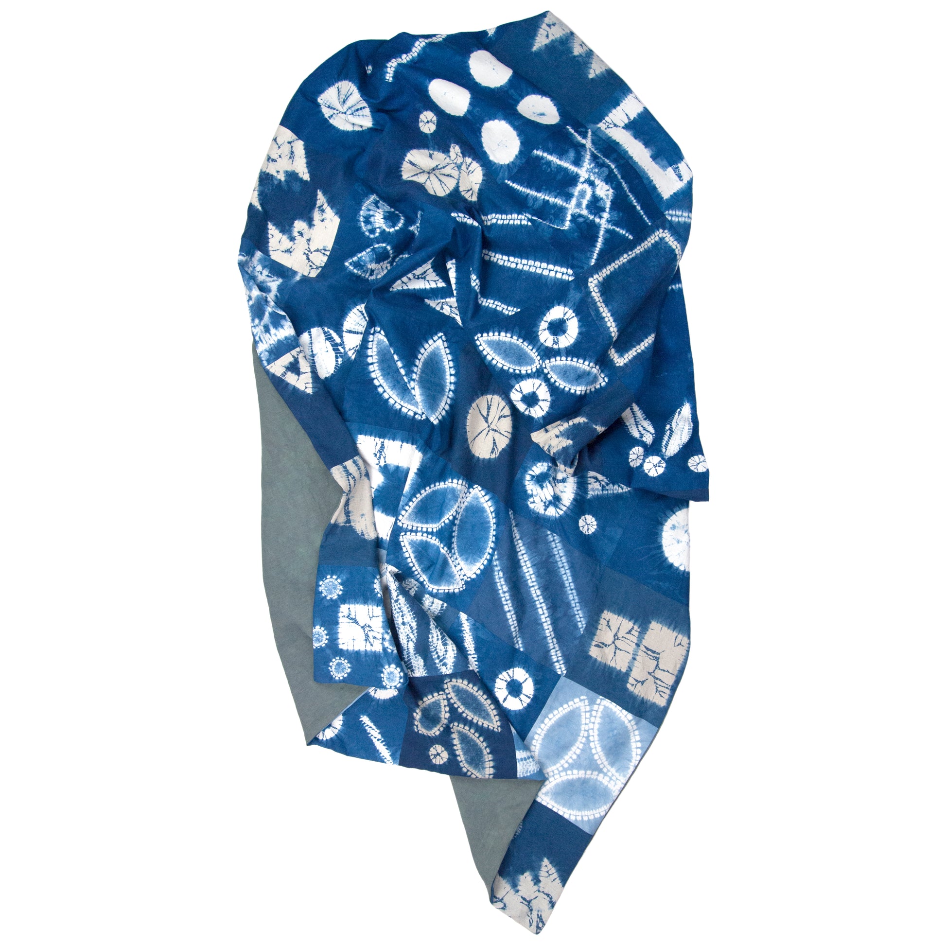 Handmade by team of one with love over the course of 3 months. Each square is a recycled 100% linen piece that has been first hand stitched with the shapes to form a resist. They are then hand-dyed individually in my organic indigo dye vat. Each square is thoroughly washed 3 times and fixed, then pressed and sewn into a larger and larger piece with time.