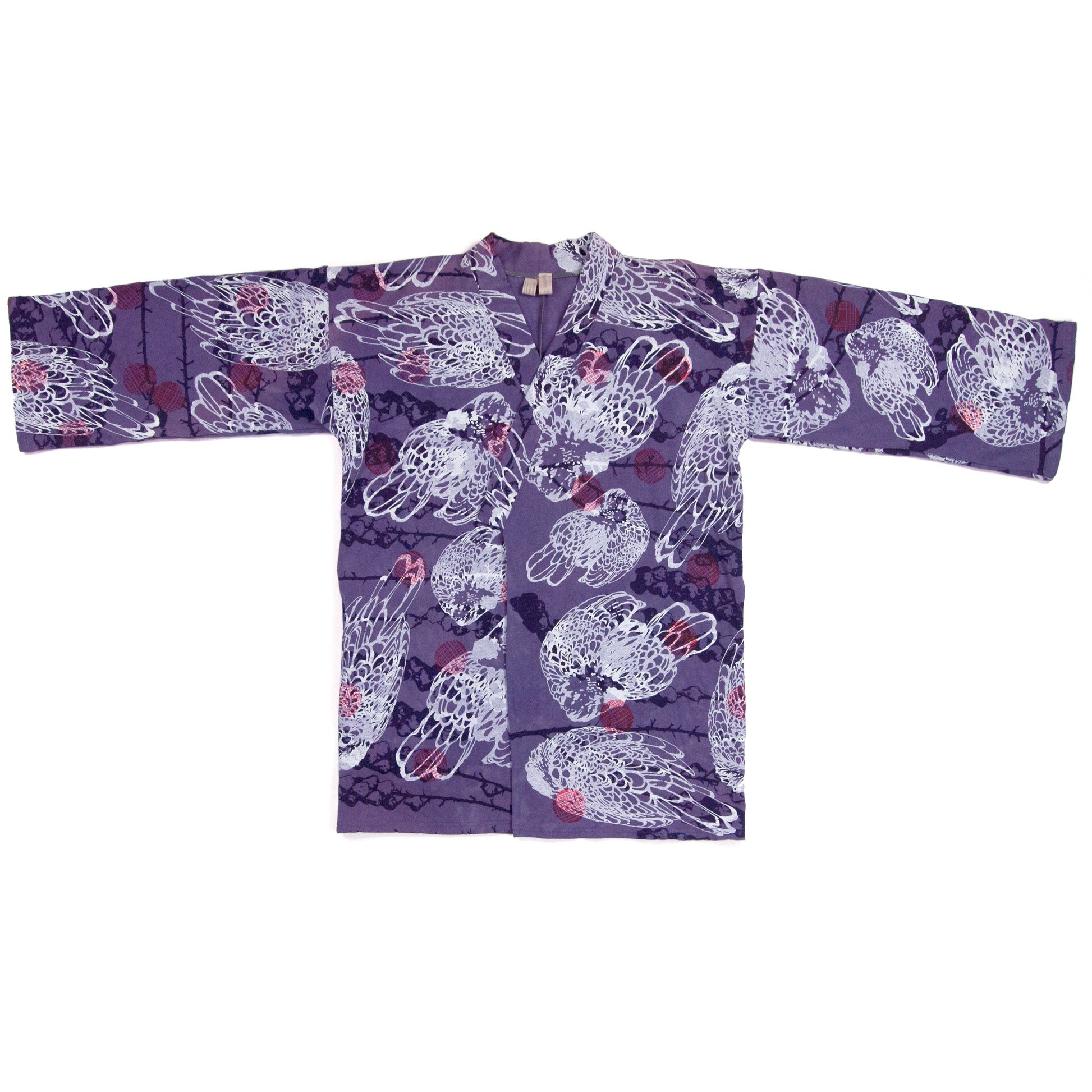 Purple Jersey Knit Kimono Style Wrap with Chickens