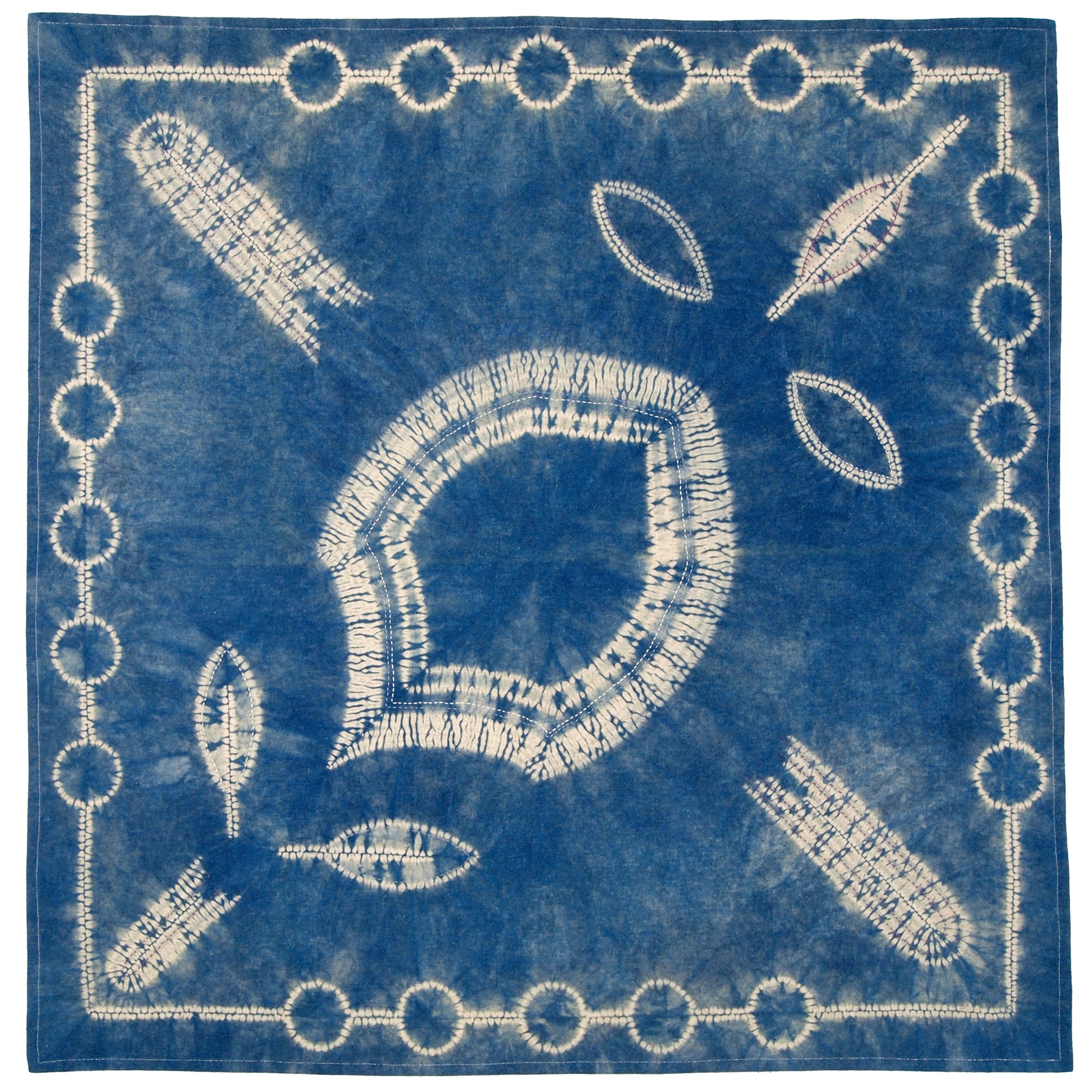 Stitching Resist Shibori + Embroidered Fabric; Crest