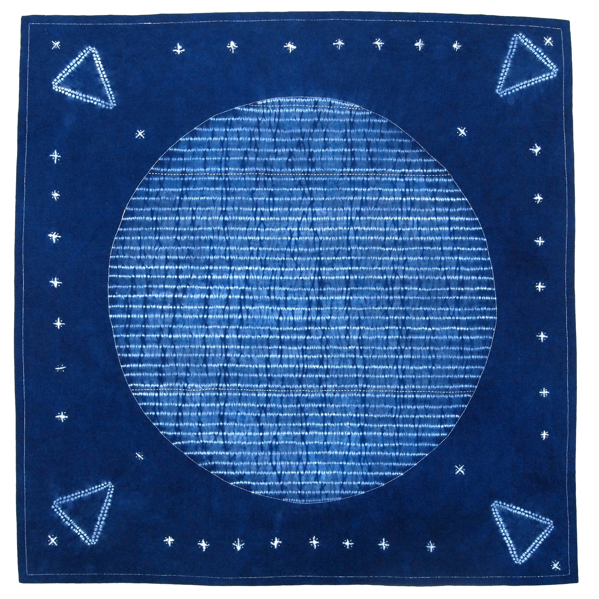 Stitching Resist Shibori + Embroidered Fabric; Moon