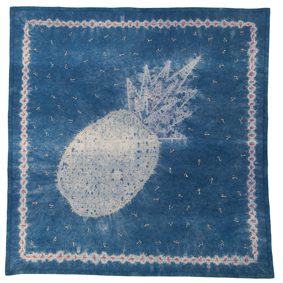 Stitching Resist Shibori + Embroidered Fabric; The Pineapple