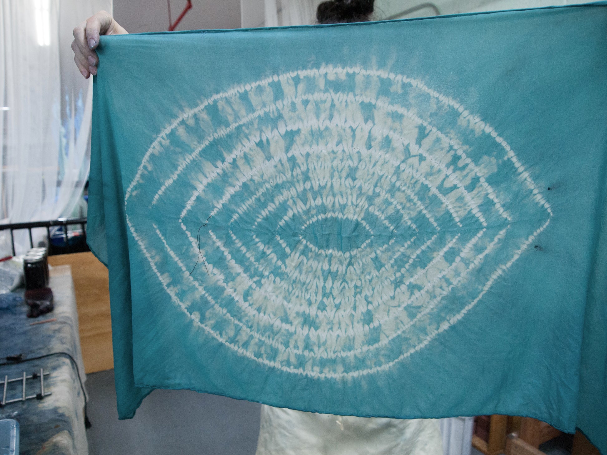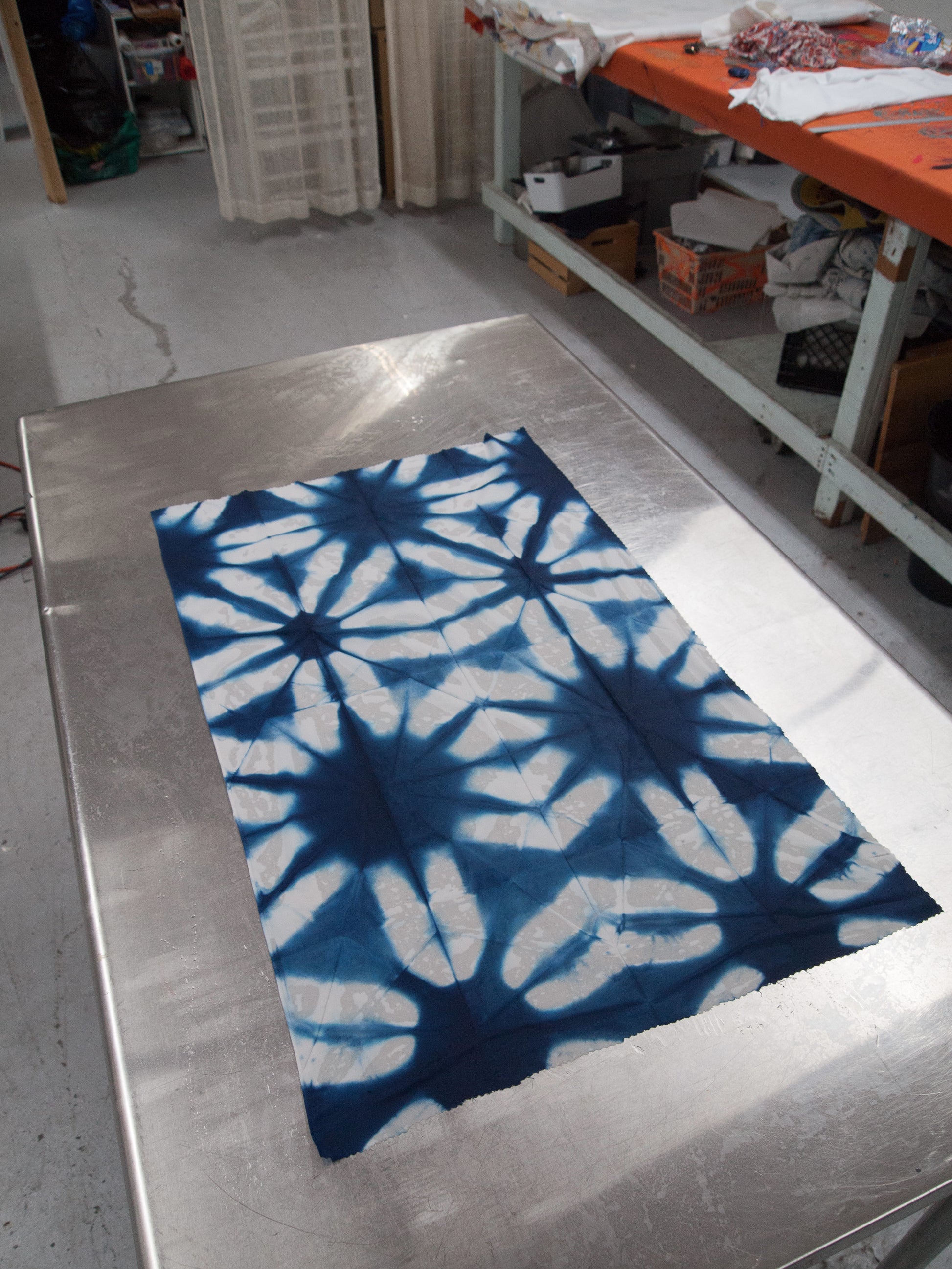 Come back from lunch and check on our indigo vat! More difficult techniques are shown like Tatsumaki, Miura, Yanagi as well as Nui, a beginner stitch resist. We finish by speaking of the proper care for the fiber and washing. Students will be allow to take tools home with them to continue to work on pieces over the week.