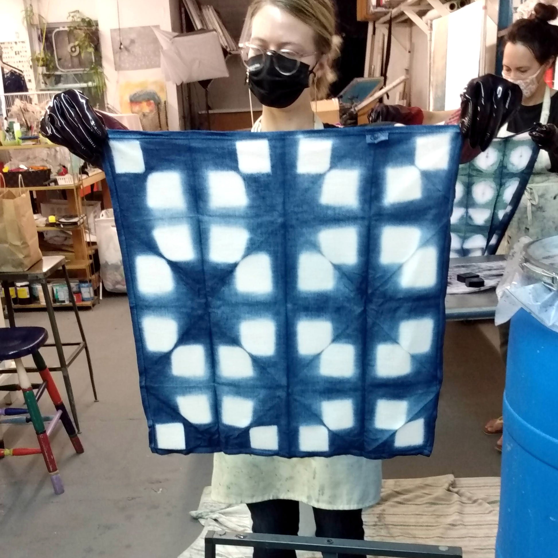 In this shibori dyeing class, open to beginners or returning Beginner Shibori students, we will focus on Itajime techniques. These focus on using folding and blocks to create tradition patterns. Learn the difference between triangle, grid and the lovely ways to fold to create pieces that resemble mandalas.