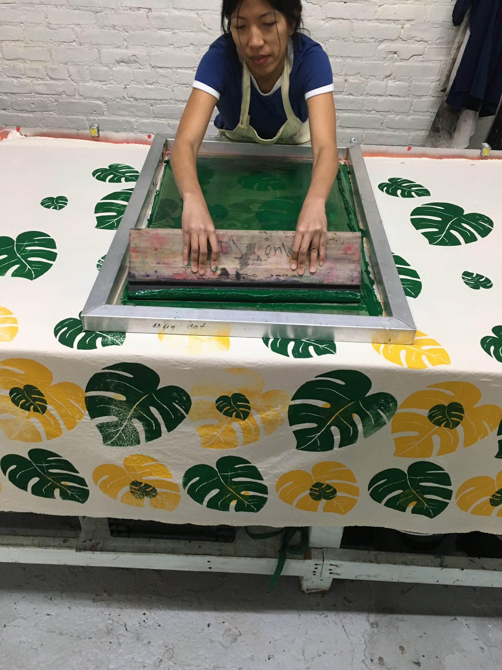 Day 1: Intro to materials, Day 2: Set up your screen and print table (2 yards muslin provided), Day 3: Print print print textile yardage you bring. Returning students can map out their own goals withing the 3 days.