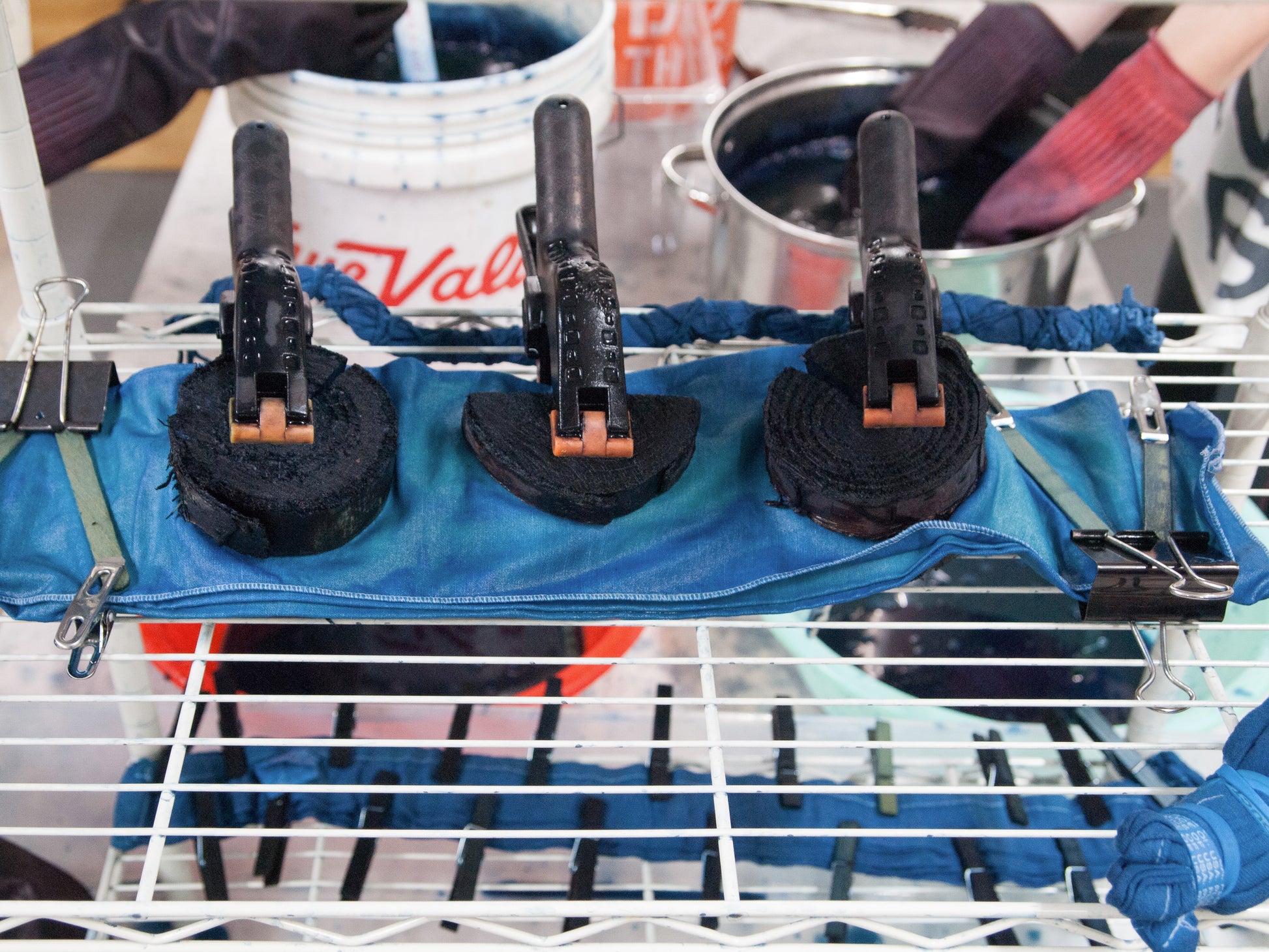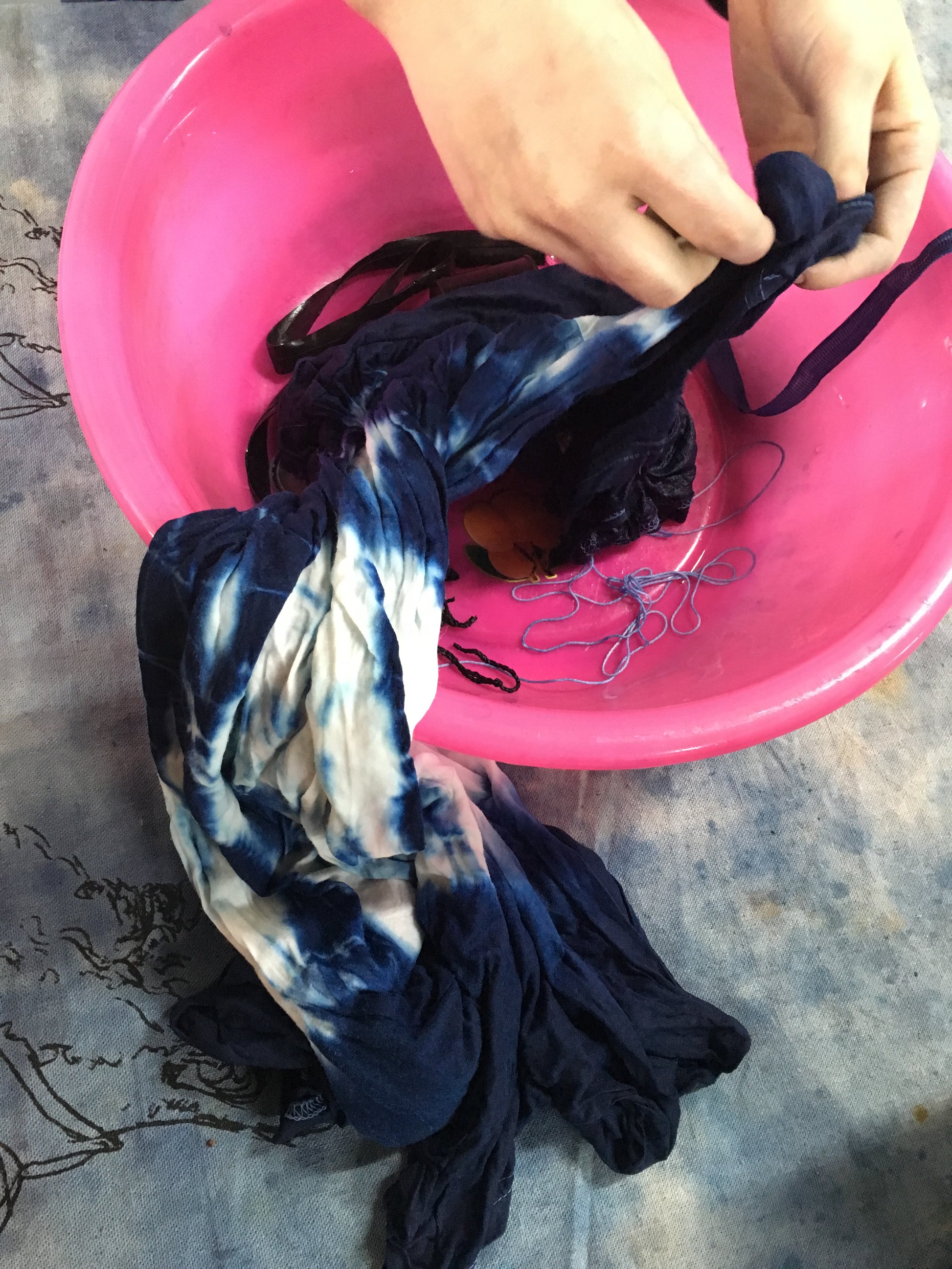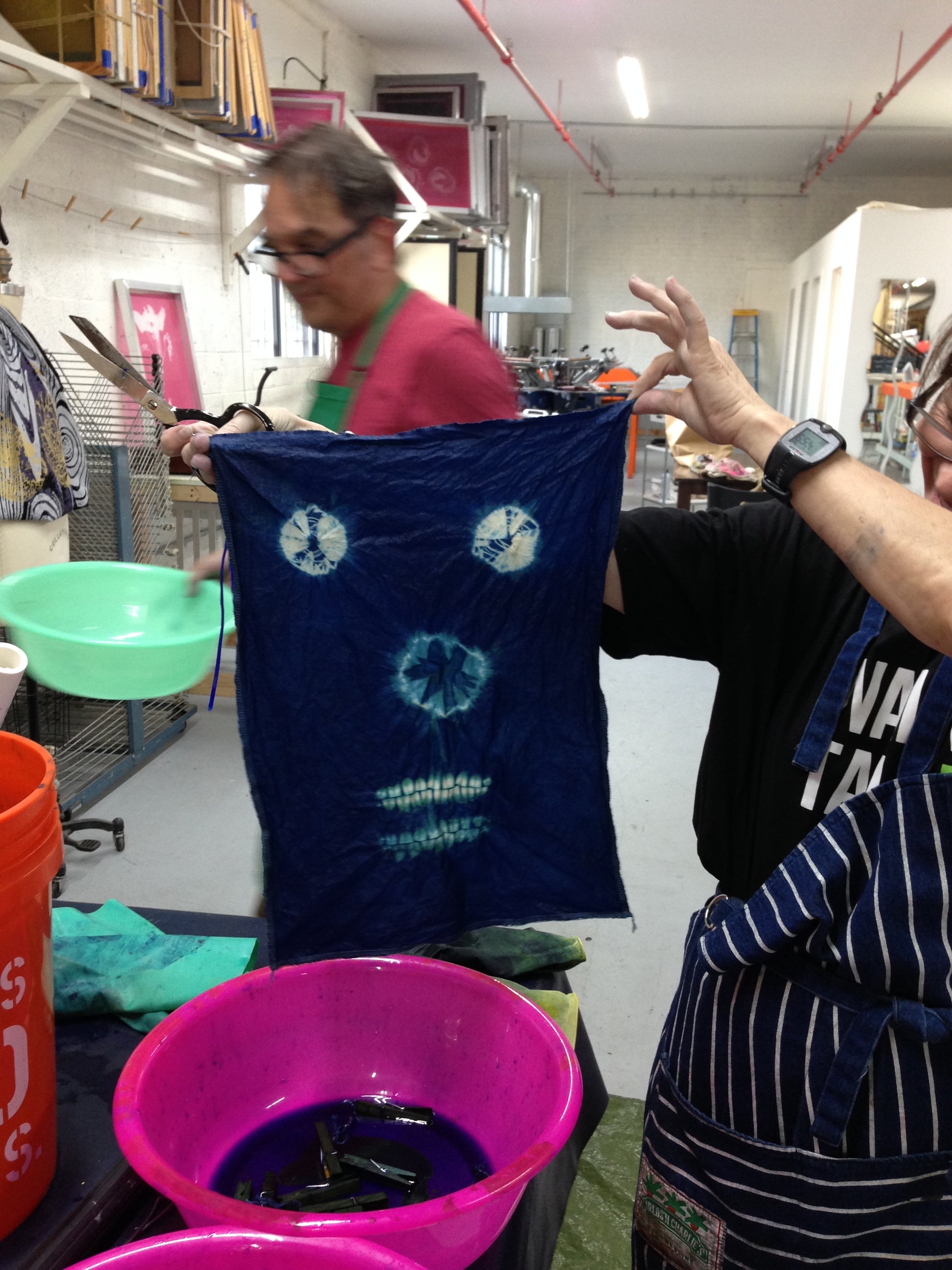 2. While it settles, we go into all the shibori and tie-dyeing techniques possible within the time we have a group size.
